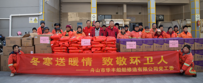1月16日上午,冬寒送暖情。公司黨支部、工會(huì)領(lǐng)導(dǎo)賀岳軍、訾彬、朱建春等走進(jìn)定海區(qū)環(huán)境衛(wèi)生管理中心,向辛勤工作在一線的環(huán)衛(wèi)工人送上200份大米、食用油、保溫杯,表達(dá)企業(yè)黨工委對(duì)環(huán)衛(wèi)人的誠(chéng)摯敬意。