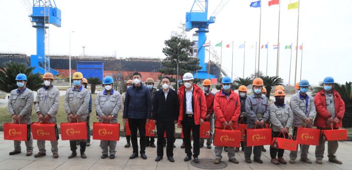 發(fā)布時(shí)間:2023-01-21 點(diǎn)擊量:22622023年1月21日,上午10時(shí)半許,定海區(qū)委書記侯富光來到華豐船廠慰問一線員工,區(qū)委常委劉世君、區(qū)經(jīng)信局局長(zhǎng)何斌、白泉鎮(zhèn)黨委書記陳益等陪同。華豐公司總經(jīng)理鄔志祥、生產(chǎn)副總周炳科、行政副總樂漢江等熱情迎接。